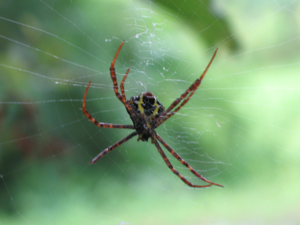 辦公室窗外這隻蜘蛛,已經伴隨著我們將近一個多月,不管風吹日曬雨淋,牠永遠固守在窗邊;可惜我沒有很好的相機,可以更清晰、靠近的捕捉牠背上的樣貌。