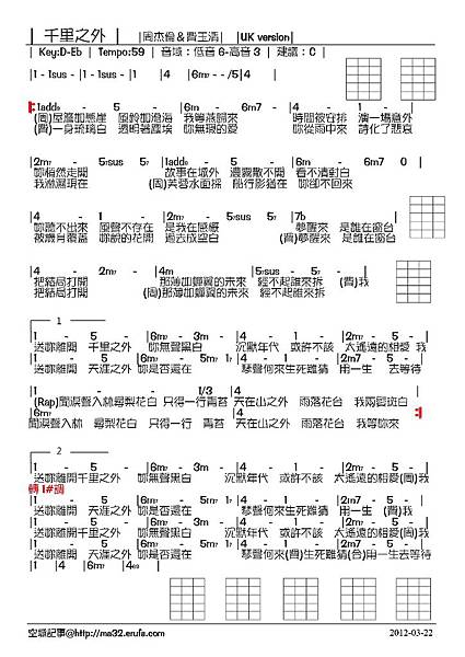 稍微修改簡化過吉他版的和弦,給烏克麗麗用~~~