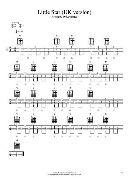 烏克麗麗譜|指法譜|和弦譜|TAB譜|小星星 G KEY
