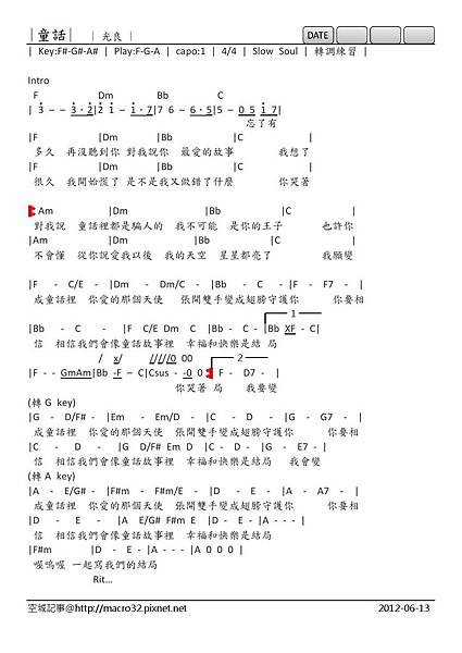 1.原曲由F#轉G#再轉A#,使用吉他的話可以練習到三個調性