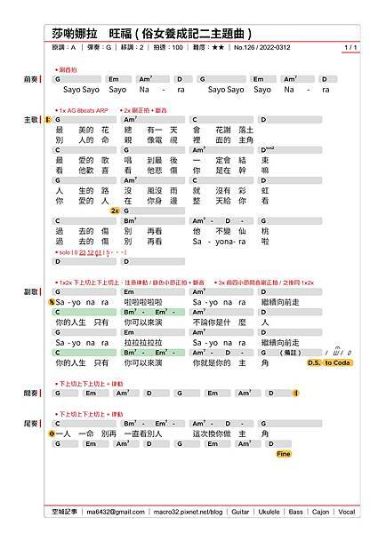 【No.126】【莎喲娜拉 - 旺福】吉他和弦譜